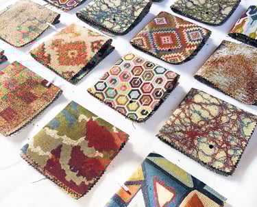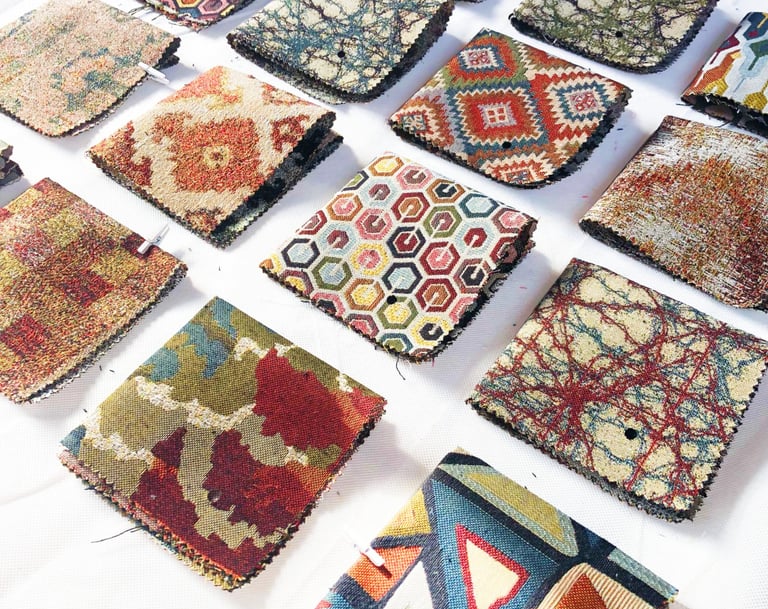 Variedad de telas durables, pensadas para trabajos de tapicería de uso profesional.